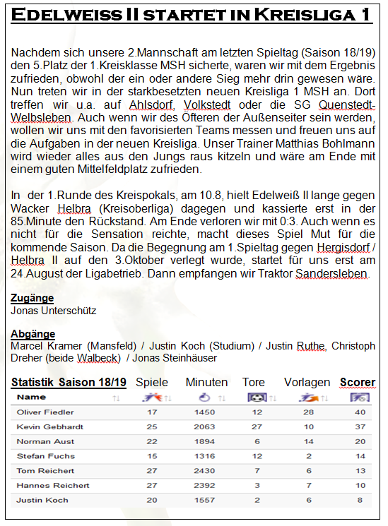 Ab dieser Saison wird unser Programmheft der Edelweiß-Kurier eine Stunde vor Spielbeginn auch digital auf unserer Homepage veröffentlich. So verpasst ihr kein Programmheft, auch wenn ihr es mal nicht zum Edelweißen Heimspiel schafft. Viel Spaß beim Lesen :)