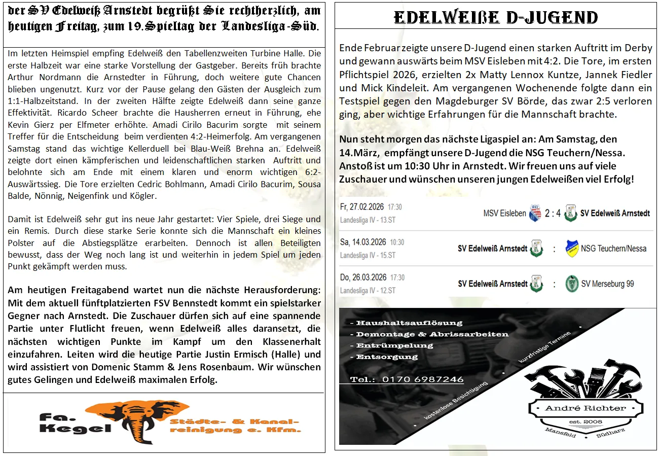 Auch in dieser Saison wird unser Programmheft der Edelweiß-Kurier am Spieltag (ab 06:00 Uhr) auch online auf unserer Homepage veröffentlich. So verpasst ihr kein Programmheft, auch wenn ihr es mal nicht zum Edelweißen Heimspiel schafft. Viel Spaß beim Lesen :)