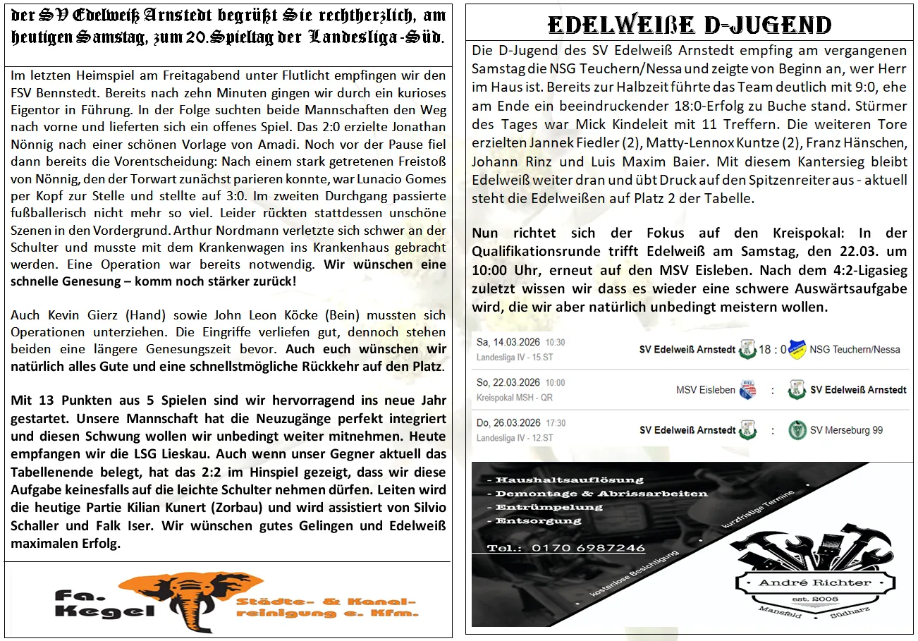 Programmheft 20.Spieltag - LSG Lieskau