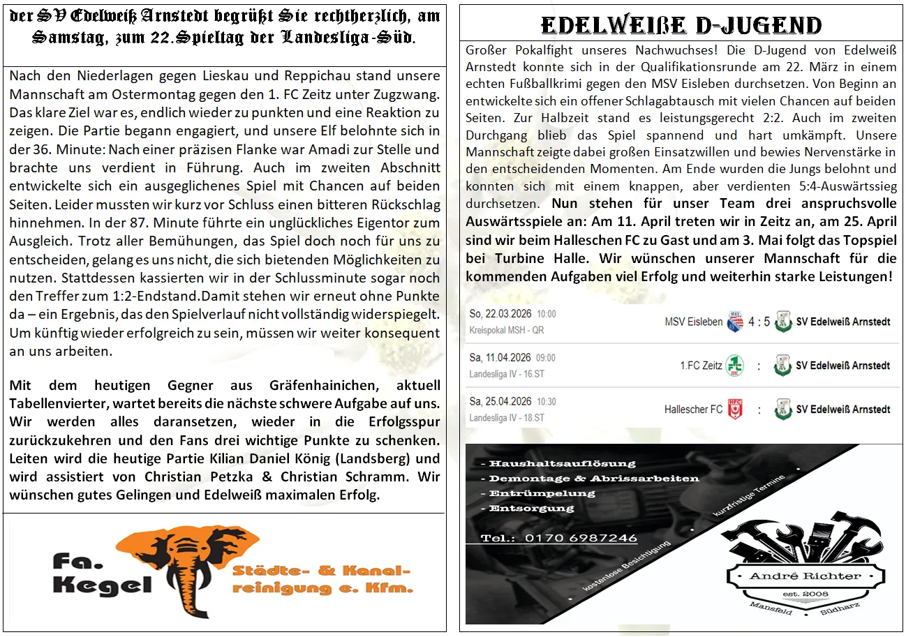 Programmheft 22.Spieltag - VfB Gräfenhainichen