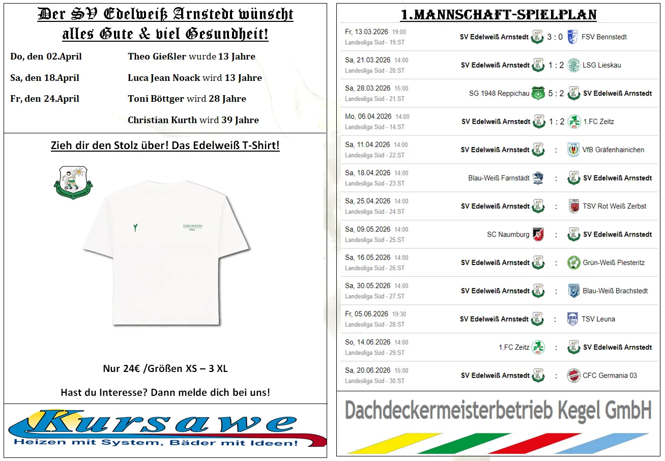 Auch in dieser Saison wird unser Programmheft der Edelweiß-Kurier am Spieltag (ab 06:00 Uhr) auch online auf unserer Homepage veröffentlich. So verpasst ihr kein Programmheft, auch wenn ihr es mal nicht zum Edelweißen Heimspiel schafft. Viel Spaß beim Lesen :)
