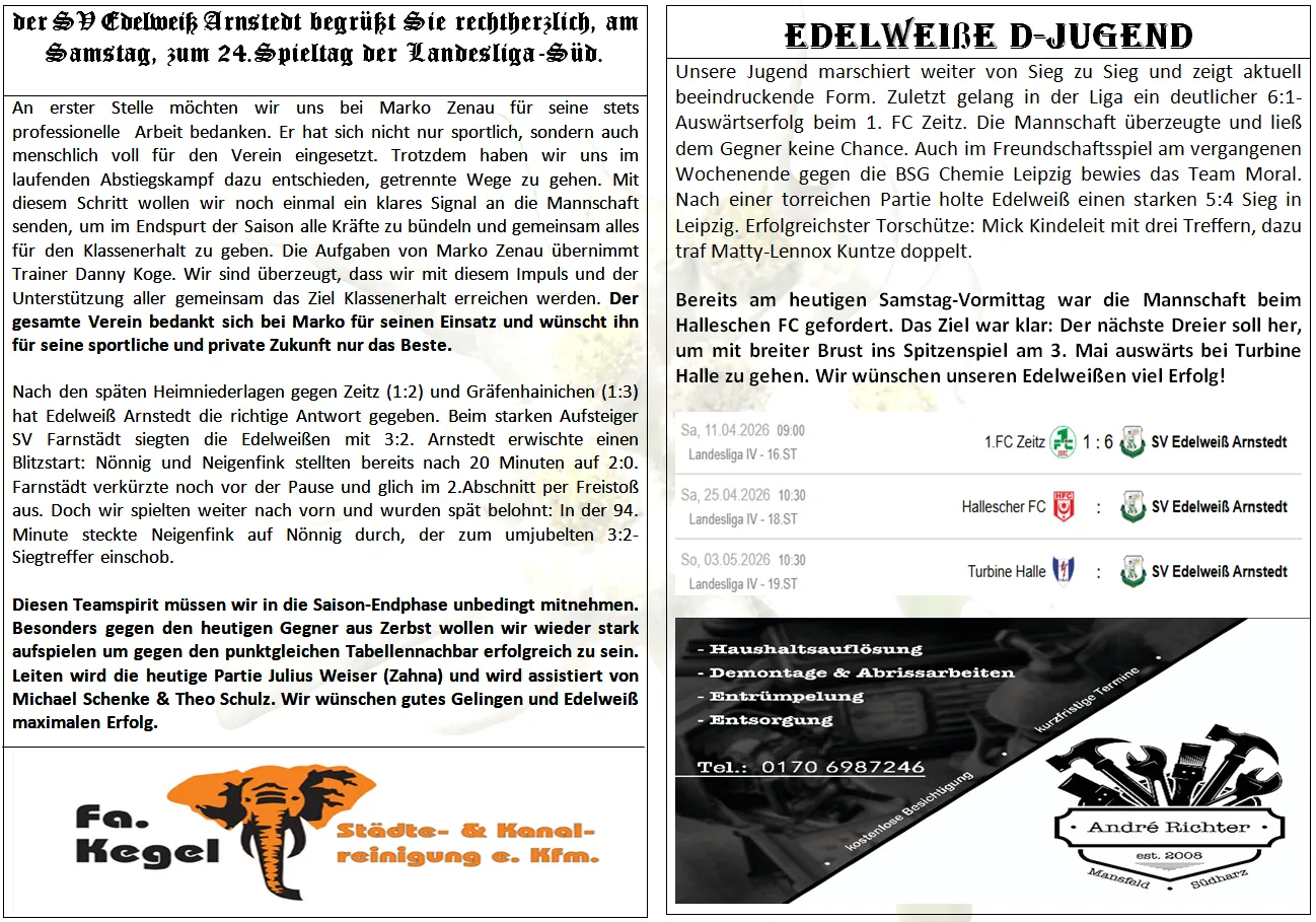 Programmheft 24.Spieltag - TSV Rot Weiss Zerbst