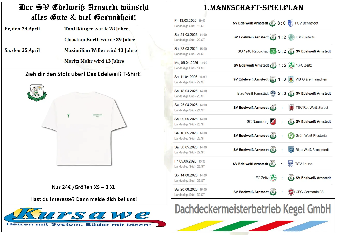 Auch in dieser Saison wird unser Programmheft der Edelweiß-Kurier am Spieltag (ab 06:00 Uhr) auch online auf unserer Homepage veröffentlich. So verpasst ihr kein Programmheft, auch wenn ihr es mal nicht zum Edelweißen Heimspiel schafft. Viel Spaß beim Lesen :)