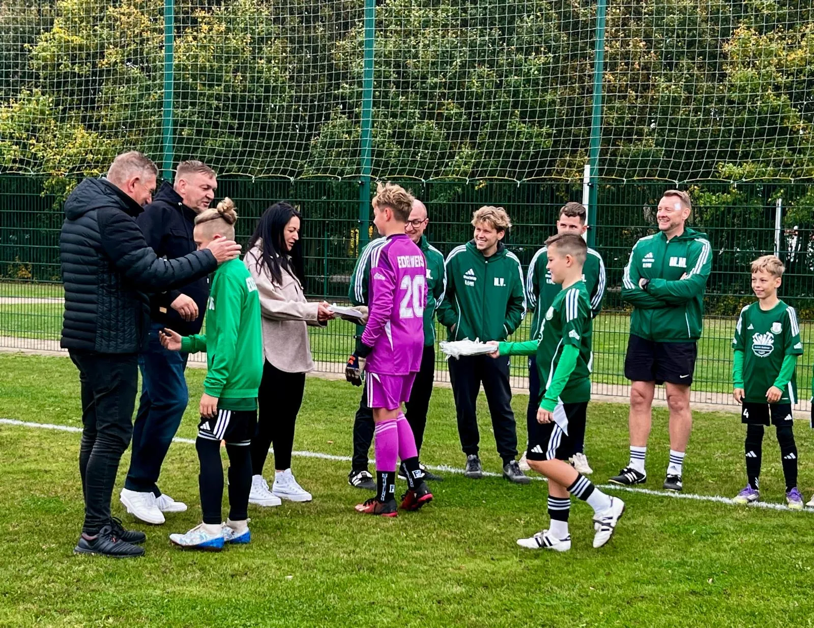 Zum gestrigen Heimspiel gegen den Halleschen Fußballclub hatten wir 3 unserer Sponsoren zu Gast. Wir nutzten den Anlass und bedankten uns bei allen Beteiligten für Ihre Unterstützung! Durch ihr Engagement war es uns möglich die Mannschaft mit neuen Trainingsanzügen und dem aktuellen Trikotsatz auszustatten.